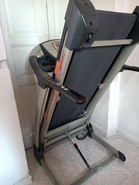 Anche se mostra segni del tempo, è perfettamente funzionante, professionale, inclinazione pedana regolabile elettricamente, 16 velocità, allenamenti programmati, pulsante e chiave di emergenza, cardiofrequenzimetro .