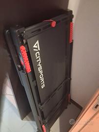 Vendo tapis roulant della CITYSPORTS, ideale per chi vuole allenarsi in casa ma ha poco spazio a disposizione. Grazie al suo design ultra sottile, può essere riposto facilmente sotto il letto, dietro una porta o in un ripostiglio. Caratteristiche principali: Design compatto e pieghevole: Si chiude completamente in pochi secondi. Facile da spostare: Dotato di ruote integrate per trasportarlo senza fatica. Struttura robusta: Nonostante le dimensioni ridotte, offre un'ottima stabilità durante la camminata o la corsa leggera. Sicurezza: Presente la clip di sicurezza rossa per l'arresto immediato.