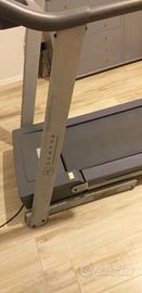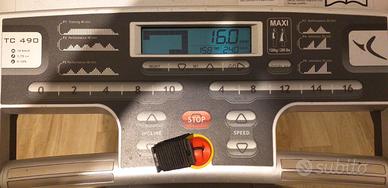 Vendo per inutilizzo tapis roulant marca domyos tc490, 6 programmi preimpostati, inclinazione fino al 10%, velocità massima 16km/h, sensori per i battiti cardiaci, cordino di sicurezza, richiudibile, il funzionamento è perfetto, presenta solo qualche segno di usura sulle parti metalliche grigie.