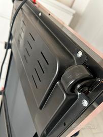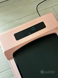 Tapis roulant elettrico per la casa per camminata e corsa. Slim machine con ruote, con telecomando e display digitale: misura le calorie bruciate, la velocità, il tempo e la distanza. Modalità camminata e corsa con una velocità massima di 10 km/h. Motore da 3,0 HP potente e silenzioso. Dimensioni: 120x50x14 cm; piano di corsa: 39x104 cm; Peso: 23,5 Kg