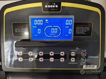 Inclinazione elettrica fino a 12 livelli, programmi di allenamento, cardiofrequenzimetro da palmo integrato sui maniglioni, regolazione di velocità e pendenza sia a display sia con comandi sui maniglioni.