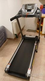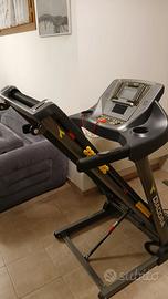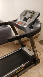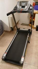 Concepito per l’allenamento home fitness, Diadora Exess 5.7 ha una superfice di corsa di 45x132 cm e il motore raggiunge una velocità di 18 km/h. Exess 5.7 è dotato di 49 programmi di allenamento: 40 programmi di velocità e inclinazione, 3 programmi target, 3 programmi personalizzabili dall'utente e 3 programmi HRC. Per questi ultimi, il battito cardiaco potrà essere controllato tramite il ricevitore cardio wireless integrato e fascia toracica (optional) o per mezzo dei sensori palmari hand pulse. Schermo LCD retroilluminato che visualizza le funzioni di tempo, velocità, battito cardiaco, calorie e distanza, necessarie per il raggiungimento della forma ottimale. Porta tablet integrato. Una volta terminati gli esercizi è possibile ripiegare Exess 5.7, le misure dell’attrezzo chiuso sono cm 100x71x141h. Grazie alle rotelle per il trasporto è inoltre possibile riporlo nel luogo a voi più congeniale. •Dimensioni attrezzo aperto: 163 x 71 x140 cm •Dimensioni attrezzo chiuso: 100 x 71 x 141 cm •Dimensioni imballo: 176 x 77,5 x 36,5 cm •Peso lordo: 73 Kg •Peso netto: 65 Kg •Peso massimo utilizzatore: 120 Kg