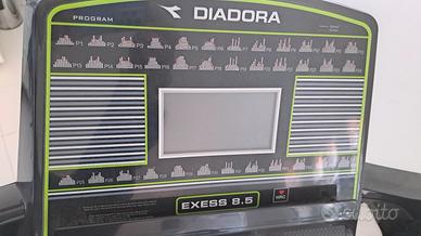 Diadora tapis roulant Exess 8.5 è un prodotto per l’allenamento domestico che garantisce delle prestazioni eccezionali. Motore molto potente da 2,75 cavalli a vapore. Infatti, arriva 18 km all’ora ed è molto stabile. È realizzato in alluminio ed è bianco di base: questo tapis roulant garantisce una superficie di corsa di 51 x 140 cm. È dotato di un computer multifunzionale da cui si possono gestire 42 programmi di allenamento. Il computer è anche dotato di monitoraggio dei parametri vitali con il sistema hand pulse ed ha un ricevitore cardiaco wireless integrato. È dotato di un supporto per il tablet ed ha un piano di corsa ammortizzato grazie alla presenza di 8 elastometri Double deck. Misura 175 x 81 x 139 cm, mentre pesa 80 kg. La sua inclinazione è elettrica e arriva fino al 15%.