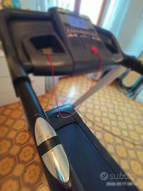 Il miglior esempio di compromesso accettabile e soprattutto conveniente per l’utente tra la qualità e il prezzo finale dell’attrezzo da allenamenti cardio domestici. Un tappeto di tipo elettrico, con un buon numero di programmi d’allenamento, con schermo LCD illuminato e la rilevazione cardiaca palmare. 2 Livelli di Pendenza manuale. Livelli di velocità: questo modello consente di impostare (anche durante la corsa) diversi livelli di velocità in base alle proprie esigenze ed abilità, fino ad arrivare ad un massimo di 13 km/h (un valore più alto della media e di altri tappeti dal prezzo simile) Programmi d’allenamento preimpostati: sono ben 19 i programmi d’allenamento che offre questo tappeto, di cui 12 sfruttano la velocità e l’inclinazione, 3 sono detti programmi target (ovvero l’utente sceglie se allenarsi in base alle calorie da bruciare o alla durata dell’allenamento) e 4 programmi “utente” (personalizzabili). Questa ricchezza di programmi rende il tappeto molto versatile ed adatto ad un numero abbastanza grosso di utenti dalle caratteristiche fisiche ed esigenze aerobiche differenti. Tipologia: Elettrico Potenza motore: 1,5 hp Dimensioni tappeto di corsa: 42 cm Peso massimo utilizzatore: 110 kg Programmi preimpostati: 19 Informazioni display: Calorie, Distanza, Pulsazioni, Tempo, Velocità Velocità max: 13 km/h Livelli inclinazione: 2 Connettività: Assente Dimensioni da aperto: 170 x 70 x 126 cm Peso: 52 kg