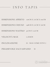 Vendo tapis roulant Diadora, usato ma tenuto in ottime condizioni. Ideale per allenarsi in casa, occupa poco spazio grazie al sistema pieghevole salvaspazio (vedi foto).
