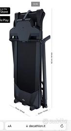 Vendo Tapis roulant Domyos Run 500 pari al nuovo con ancora pellicole. Usato una decina di volte al max . Ancora 4 anni di garanzia con Decathlon, pellicole originali e relativo scontrìno con manuale di istruzione. Pagato 714 euro. Velocità massima 16km/h e inclinazione motorizzata fino al 10%. Superficie di corsa adatta per le performance, larga 45 cm e lunga 130cm. Consolle touch connessa alle migliori app. 30 programmi. Dimensioni prodotto: Altezza: 136 cm. Lunghezza: 162cm. Larghezza: 75 cm. Dimensioni prodotto piegato: L.162 x 1.75 x H. 27cm. Il tapis roulant Domyos RUN 500 ha la particolarità di unire PERFORMANCE e CHIUSURA COMPATTA. Le PERFORMANCE del tapis roulant sono datte dalle sue caratteristiche tecniche, come ad esempio la velocità massima, l'inclinazione motorizzata al 10%, la connettività della consolle con le migliori app, le dimensioni della superficie di corsa, la durata di utilizzo settimanale. La CHIUSURA COMPATTA permette di avere un prodotto facile da riporre in un angolino quando non deve essere utilizzato.
