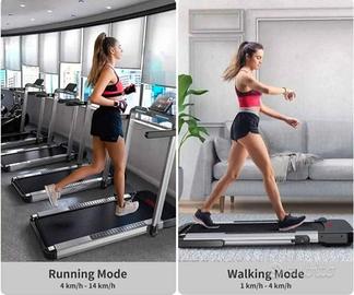 Ha una velocità massima di 14 km/h, 12 programmi di esercizi predefiniti e un display LED touch per monitorare la distanza, le calorie, il tempo e la velocità.