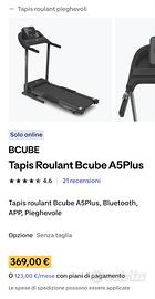 vendo tapis roulant elettrico. marca bcube modello A5 plus. pagato 370 euro un anno fa da decathlon, usato per la riabilitazione. vendo a 250 euro. è praticamente nuovo. non spedisco. vendo già montato.