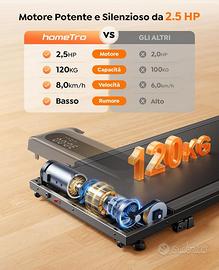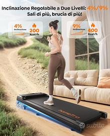 Prezzo di listino: 280 euro. Dato che il pacco è stato aperto ma mai usato, nuovo prezzo: 190 euro. 🏃♂️【Tapis Roulant Inclinabile per un Allenamento Efficace】Il nostro tapis roulant è dotato di un'inclinazione regolabile (4%/9%), ideale per simulare la camminata in salita e aumentare l'intensità dell'allenamento. Perfetto per bruciare più calorie e migliorare la resistenza, sia a casa che in ufficio. 🏠【Design Salvaspazio e Facile da Riporre】 Con un design compatto (115,3 x 48,5 x 16,9 cm) e ruote integrate, questo tapis roulant è facile da spostare e riporre sotto il divano, il letto o la scrivania. Ideale per case piccole e uffici con spazio limitato. ⏳【Nessuna Installazione Necessaria, Pronto all'Uso】Questo tapis roulant arriva completamente montato, pronto per l'uso! Non è necessaria alcuna installazione. Basta collegarlo alla presa e iniziare subito a camminare o correre. 📱【App e Telecomando per un Controllo Facile】Con il telecomando incluso, puoi facilmente regolare la velocità (1-8 km/h) e mettere in pausa l'allenamento senza interrompere il monitoraggio dei tuoi progressi. Il telecomando si attacca magneticamente al tapis roulant, evitando perdite. 🔇📊【Display Multifunzione/Motore Silenzioso per Allenamenti senza Disturbo】 Monitorare i Progressi: Il display LED mostra chiaramente tempo, distanza, velocità, calorie bruciate e altri dati importanti. Controlla il tuo allenamento a colpo d'occhio e ottimizza i tuoi risultati. Il motore potente e silenzioso permette di fare esercizio in qualsiasi momento senza disturbare la famiglia o i colleghi 💪【Ammortizzazione e Comfort per le Articolazioni】Dotato di un sistema di assorbimento degli urti avanzato, il tapis roulant riduce l'impatto sulle articolazioni, migliorando la tua esperienza di corsa e camminata. Perfetto per allenamenti quotidiani senza stress per le ginocchia. 💼🏃♀️【Perfetto per Lavorare e Allenarsi allo Stesso Tempo】Con il suo design sottile e il motore silenzioso, questo tapis roulant è ideale