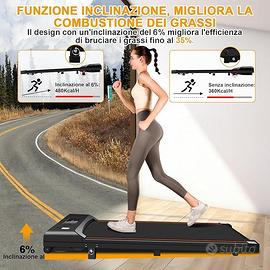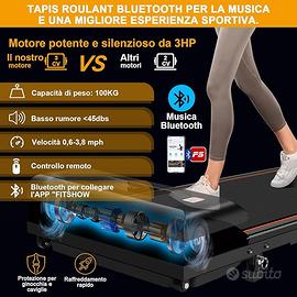 Tapis roulant con inclinazione: il tapis roulant è dotato di un'inclinazione del 6%, funzione che simula facilmente scenari realistici di salita per bruciare più calorie. Il tapis roulant include altoparlanti integrati e Bluetooth per lo streaming di musica, per mantenere la motivazione durante gli allenamenti.