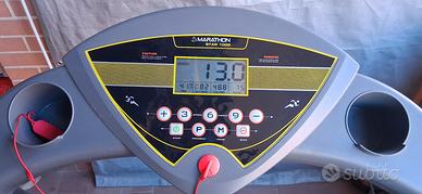 In ottime condizioni, usato molto poco, peso utilizzatore max 110 kg, velocità max 13 km/h, misura tempo, calorie, distanza, frequenza cardiaca; programmi allenamento preimpostati; chiave di sicurezza magnetica con clip e cordoncino, piedi posteriori regolabili a 3 altezze, piedini anteriori di livellamento regolabili, ruote di trasporto posteriori. Motore da 1,5 Hp fino a 4800 giri/min. Completo di manuale istruzioni e scatolo imballaggio. Dimensioni circa aperto 153x68x127h cm, chiuso 71x71x148h cm, peso circa 40 kg