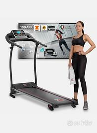 Vendo per inutilizo TAPIS ROULANT ELETTRICO PIEGHEVOLE 12 KM/H CARDIO CARATTERISTICHE. Tapis Roulant completo, compatto, pieghevole e salvaspazio (NEW model 2022) - Motore lineare Smooth Power DriveTM - 12 programmi di allenamenti preimpostati – Ampio display digitale LCD - Sensori pulsazioni battito cardiaco - Inclinazione regolabile su 3 livelli: 0%, 7% e 15% (corrispondenti a 0°, 4° e 8° gradi) - Regolazione della velocità e delle modalità di funzionamento - Velocità da 1 a 12 km/h - Facile da movimentare e da riporre grazie alle ruote in dotazione.