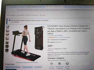 CITYSPORTS Tapis Roulant Elettrico Pieghevole 1-12km/h, Salvaspazio Con Display a LED, Supporto per App e Tablet a 360°, Compatto per Casa e Ufficio Colore: Black&Red MarchioCITYSPORTS Vantaggi del prodottoIl tapis roulant pieghevole CITYSPORTS consente un allenamento comodo e flessibile in casa, con funzionalità Bluetooth, display a LED e un design salvaspazio.Il tapis roulant pieghevole CITYSPORTS consente un allenamento comodo e flessibile in casa, con funzionalità Bluetooth, display a LED e un design salvaspazio. ColoreBlack&Red Classe prodottoa casa Dimensioni del prodotto123,8P x 58,7l x 103H cm Peso articolo26,5 Chilogrammi MaterialeLega di acciaio Velocità massima12 Chilometri all'ora Caratteristica specialeBluetooth, Pieghevole Usi consigliati per il prodottoesercizio fisico quotidiano, perdita di peso, riabilitazione, fitness a casa Consegna a domicilio Provencia di Brescia inclusa X spedizione altre province costi di Poste Italiane