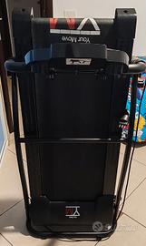 Vendo tapis roulant YM (marchio italiano) elettrico pieghevole e salvaspazio, 12 programmi di allenamenti, ampio display digitale, Sensori pulsazioni battito cardiaco - Inclinazione regolabile, regolazione della velocità ed accensione e spegnimento anche dal poggia mani, ruote in dotazione per spostamenti, chiavetta di sicurezza. Capienza di peso: 120 kg. Compreso di porta smartphone, tablet, ipad. Dimensioni del prodotto pronto all'uso: 126 x 64 x 126 cm - Dimensioni del prodotto piegato: 60 x 64 x 126 cm. Disponibilità immediata