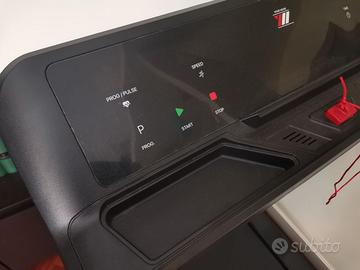 Vendo a prezzo d'occasione tapis roulant professionale elettrico pieghevole Your Move (YM) modello Next 4000. Come NUOVO (usato in tutto meno di 2 ore!). Acquistato su Amazon il 22/02/2023 a 399,99 euro. Funziona perfettamente: lo rivendo, con un certo rammarico, perché sono spesso fuori sede per lavoro ed è un peccato tenerlo inutilizzato. Colore:Nero Dimensioni da aperto: 147D x 74L x 120H cm Dimensioni da chiuso: 147D x 74L x 25,5H cm Peso: 38 Chilogrammi [CARATTERISTICHE]. Presenta un’ampia e ammortizzata superficie di corsa, per garantire il massimo delle prestazioni, 12 programmi di allenamento a varie intensità, 3 livelli di inclinazione, un motore potente da 2,5HP per correre fino ai 14 km/h. [ALLENAMENTO INTERATTIVO]. Il display è dotato di un innovativo CONTROLLO dei movimenti GESTURE CONTROL (Patent Pending) in grado di riconoscere i MOVIMENTI DELLE MANI. Allenati divertendoti grazie alle APP compatibili (Kinomap, Zwift, Bitgym e Fitshow) scaricabili su Google Play e App Store. Con il Bluetooth potrai connetterti a TV, PC, Smartphone e Tablet. Troverai allenamenti strutturati per obiettivi + musica motivazionale + cronologia allenamento individuale + coaching e molto altro. [MONTAGGIO SEMPLICE]. YM NEXT 4000 arriva premontato, già lubrificato, completo di tutti gli accessori e manuale in lingua italiana. È sufficiente aprire il tapis roulant per un prodotto immediatamente pronto all’uso. Una volta terminato il suo utilizzo, potrà essere chiuso facilmente e riposto orizzontalmente o verticalmente occupando pochissimo spazio, grazie allo spessore di soli 25,5 cm. Le ruote integrate permettono una facile movimentazione. TAPPETO antivibrazioni fonoassorbente incluso. [SPECIFICHE TECNICHE]. Potenza Motore: 2,5 HP (Picco: 4,0 HP) – Velocità massima 14,0 km/h - Capienza di Peso: 120 kg. – Larghezza superficie di Corsa: 42 cm – Lunghezza superficie di Corsa: 120 cm – 3 Livelli di Inclinazione – 12 Programmi di Allenamento – Sensori Cardio sulle impugnature