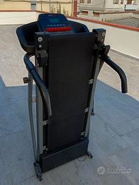Tapis roulant elettrico modello Fitfiu M-100, compatto e pieghevole pensato per chi vuole mantenersi in forma senza rinunciare allo spazio in casa. Motore silenzioso da 900 W e velocità regolabile fino a 10 km/h, ideale per camminate veloci o corsette leggere.