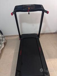 II tapis roulant RUNIOOE ha una consolle compatta con display LCD retroilluminato per leggere bene i dati: tempo, distanza, velocità, andatura, calorie e bpm. La velocità massima è di 14km/hr facilmente regolabile grazie ai 7 pulsanti brevi e ai pulsanti + e – e al telecomando fornito con il tapis roulant.