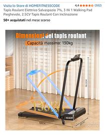 Tapis Roulant Elettrico Salvaspazio 7%, 3 IN 1 Walking Pad Pieghevole, 2.5CV Tapis Roulant Con Inclinazione. Acquistato il 12/1/26 e ora non piu necessario