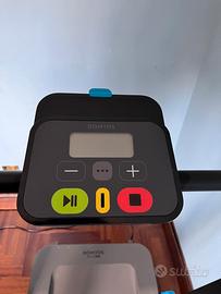 Il display centrale permette di conoscere le informazioni essenziali per la pratica: durata, velocità, distanza percorsa, stima delle calorie bruciate e numero di passi effettuato durante la seduta.