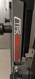 Tapis Roulant Everfit TFK455 Slim HRC in ottime condizioni generali, con forse 20 ore di utilizzo totali. Attrezzo completamente richiudibile e salva spazio. 12 livelli di inclinazione con regolazione elettrica. Velocità nastro da 0.8 km/ora a 16 km/ora. Potenza del motore 2 HP continui 3 HP di picco. Rilevazione frequenza cardiaca e ricevitore HR. Il Tapis funziona perfettamente e consente di allenarsi anche in spazi ridotti. Da chiuso si può riporre dietro una porta o tranquillamente sotto il letto con facilità. Attrezzo di qualità e molto robusto in tutte le sue parti. Presenti anche dei programmi di allenamento pre- impostati e possibilità di programmare 1 a piacere. A corredo anche tutta la documentazione originale e un flacone di olio siliconico per il tappeto.