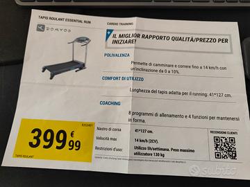 tapis roulant acquistato nel 2016 usato pochissimo in ottime condizioni, c'e anche la possibilità di inclinazione