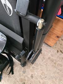 Tapis Roulant GETFIT Route Space Compact un tappeto imponente con prestazioni di alto livello, facilmente richiudibile con funzione salvaspazio. Nuovo colore total black. Caratteristiche tecniche POTENZA 3 hp VELOCITÀ 1,0-20 km/h PIANO DI CORSA 140x46 cm PROGRAMMI 6 preset +2 hrc + 4 user SPESSORE NASTRO 1,6 mm INCLINAZIONE ELETTRICA Auto 0-15% DIMENSIONI DISPLAY 120x60 mm RETROILLUMINAZIONE Blue PULSANTI RAPIDI VELOCITÀ SUL DISPLAY Sì PULSANTI VELOCITÀ CORRIMANO Sì HAND PULSE Sì RICEVITORE HRC si PIEGHEVOLE Sì CILINDRO SERVO ASSISTITO PER CHIUSURA No ROUTE DI TRASPORTO 2 SISTEMA DI AMMORTIZZAMENTO Dual Flex RULLI ANT/POST. 54/46 mm PIANO DI CORSA Rinforzato DIMENSIONI APERTO 1770x770x1650 mm DIMENSIONI CHIUSO 400x770x1800 mm DIMENSIONI IMBALLO 1930x850x410 mm PESO NETTO/LORDO(KGS) 75/86 kg MONTAGGIO Pre-assemblato PESO MAX UTENTE 140 kg