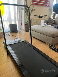 Tapis roulant pratico e comodo da avere in casa. La barra di appoggio si svita facilmente e il tappeto diventa comodoamente stipabile in casa in piccoli spazi. Velocita regolabile da 1 a 8 (corsa leggera). Dotato di cinghia di sicurezza per stoppare la macchina in caso di difficoltà senza dover ricorrere al telecomando (telecomando in dotazione). Disponibile per ritiro o consegna a Milano e dintorni.