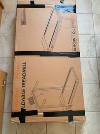 È pieghievole, ha il cavo elettrico, indica su display: velocità, tempo, calorie e distanza. La velocità si regola da 1 Km/h a 14 Km/h.