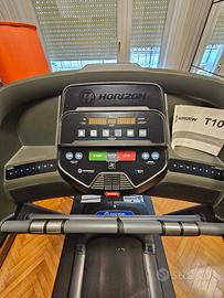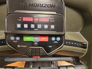 tapis roulant horizon T101 full optionals nuovo mai usato completo di tappeto. equipaggia: porta USB 2 porte Jack cuffia / audio Bluetooth doppia cassa altoparlante display e pannello di controllo perfettamente funzionante regolazione velocità e inclinazione rapida