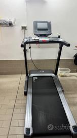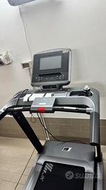 Tapis roulant professionale jk fitness 167 Acquistato nel 2020 e utilizzato poche volte in inverno. JK-167 consente di allenarsi ad una velocità variabile da 0,8 a 22 km/h con incrementi di 0,1 km/h oppure selezionando una delle tre velocità impostate; è possibile inoltre regolare l'inclinazione elettrica su 20 livelli per creare percorsi in salita ed aumentare lo sforzo durante l'esercizio, il tutto comandato tramite pratici tasti senza mai dover scendere dal tapis-roulant. L'ampio piano da corsa misura 140x51 cm per allenamenti comodi e sicuri, con un nastro antiscivolo su tela di cotone a tramatura doppia, spesso 1,6 mm. Il piano è ammortizzato da 4 elastomeri con molle + 4 elastomeri per ridurre al minimo l'impatto su schiena ed articolazioni. Compatibilità con le apps Zwift e Kinomap è già presente (accesso da brand Powerland) Grazie al pistone idraulico, le operazioni di apertura e chiusura della pedana avvengono in maniera servoassistita, senza il bisogno di praticare alcuno sforzo. Il treadmill JK Fitness 167 è equipaggiato di una moderna console con schermo TFT ad alta risoluzione touch screen che svolge la funzione di video interattivo, oltre a mostrare i principali dati di allenamento: tempo, distanza, velocità, inclinazione, ritmo, passi, calorie, frequenza cardiaca, profilo programma. I battiti cardiaci vengono rilevati tramite pratici sensori handpulse, Completano la dotazione della console: collegamento WIFI, internet browser, Apps Preinstallate (You Tube, Twitter, Chrome, Netflix, Spotify, Fb, Prime Video), ingresso MP3, altoparlanti, entrata usb per ricarica di smartphone/tablet, bluetooth per appa fit show, 2 portaborraccia. Il treadmill offre la possibilità di allenarsi in modalità manuale o selezionando uno dei programmi impostati: 1 Programma Manuale 36 Programmi Preimpostati con variazione di velocità ed inclinazione 1 HRC 16 Programmi personalizzabili e memorizzabili 1 Funzione pausa programma