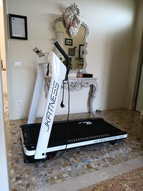Tapis Roulant JK Fitness color bianco e nero perfettamente funzionante. usato come nuovo. si può riporre sia chiuso sia orizzontale (a terra) che in verticale.