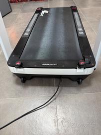 Il motore DC da 2,00 HP continuativi (fino a 3,00 HP di picco) consente di raggiungere una velocità massima di 16 km/h, regolabile con incrementi di 0,2 km/h, per adattarsi a ogni tipo di esercizio, dalla camminata veloce alla corsa più intensa. La pendenza elettrica regolabile su 12 livelli permette di aumentare l’intensità dell’allenamento simulando salite naturali.