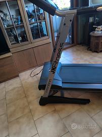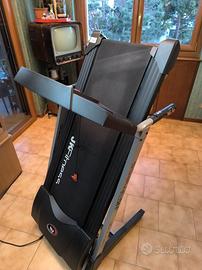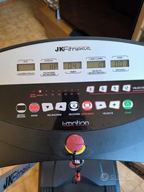 Tapis roulant jk fitness Tekna 9100 in ottime condizioni. Motore da 2 hp continuativi con spunti fino a 3 hp permette una velocità regolabile da 0,8 a 16 km/h. 12 inclinazioni impostate sul display 6 programmi per consumo diversificato delle calorie Controllo cardio e calcolo della massa grassa sul display Conforme alle normative CE e RoHS. Pieghevole per minore ingombro e dotato di rotelle per lo spostamento. Superficie di corsa cm 40x120 Misure cm 162 di lunghezza, cm 72 di larghezza. Altezza cm 137 quando aperto.