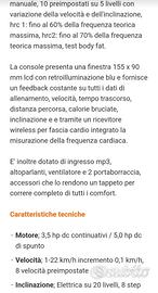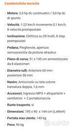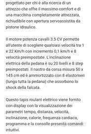 Tapis roulant professionale usato poche volte da mia moglie, praticamente nuovo, comprato 2 anni fa al prezzo di 1490€, vendo per inutilizzo, qualsiasi prova senza nessun problema, trasporto incluso nel prezzo entro un raggio di 20km.