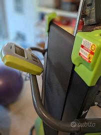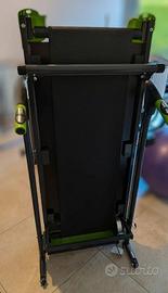 Il tappeto magnetico Diadora Evo è dotato di computer con monitor LCD sul quale vengono visualizzate le funzioni di tempo di allenamento, distanza percorsa, velocità, calorie consumate e battito cardiaco.