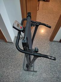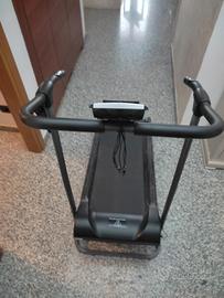 Tapis Roulant TechnoTraining - Salvaspazio Pieghevole - Ottimo Stato Descrizione dell'annuncio: Vendo per inutilizzo tapis roulant magnetico del marchio TechnoTraining, L'attrezzo è stato usato pochissimo ed è in eccellenti condizioni estetiche e funzionali, come mostrato nelle foto dettagliate. È l'ideale per l'allenamento cardio domestico, per camminate veloci o corse leggere. Punto di forza principale: è un modello salvaspazio completamente pieghevole. Una volta chiuso occupa pochissimo ingombro, potendo essere riposto facilmente contro una parete, dietro una porta o in un angolo. È dotato di ruote alla base per uno spostamento pratico e senza sforzo. Caratteristiche principali: Computer di bordo (Monitor LCD): Traccia parametri fondamentali come tempo, velocità, distanza, calorie bruciate e frequenza cardiaca. Sensori Hand Pulse: Sensori integrati sul manubrio per la rilevazione del battito cardiaco durante l'esercizio. Nastro di corsa: In ottime condizioni, ben teso e senza segni di usura significativa. Design: Struttura robusta di colore nero opaco.