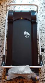 Tapis roulant magnetico compatto con ruote di trasporto. Si può bloccare con apposita manopola per spostarlo in sicurezza.