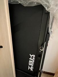 Sensore cardio, regolazione velocità da 1 a 14 km/h, altoparlanti integrati, bluetooth integrato, chiuso misura 12 cm di altezza. Mai utilizzato . Scatola originale. Istruzioni presenti, inclusi 12 programmi di allenamento preinpostati, si collega con migliori app. Struttura acciaio inox. Provvisto di ruote superficie di corsa 42x123, motore da 1800w, disply retoilluminato che mostra battiti cardiaci, calorie, tempo e distsnza con spazio porta rablet o telefono
