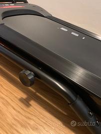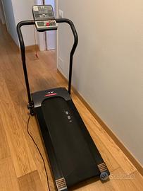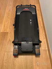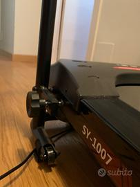 Tapis roulant modello SY-1007, dal design compatto e moderno, ideale per l’allenamento domestico. Struttura solida in colore nero con dettagli rossi, stabile e adatta sia alla camminata che alla corsa leggera. Dotato di sistema pieghevole salvaspazio, perfetto anche per ambienti piccoli. La superficie di corsa è ampia e antiscivolo, progettata per garantire comfort e sicurezza durante l’utilizzo. Include manopole laterali ergonomiche per una maggiore stabilità durante l’allenamento ed è facile da spostare grazie alle ruote integrate nella base. Molto silenzioso, ideale per chi vive in condominio o vuole allenarsi senza disturbare.