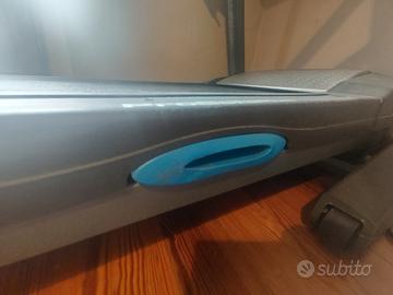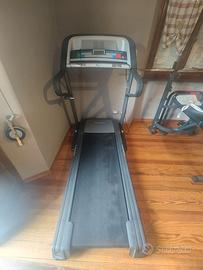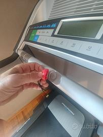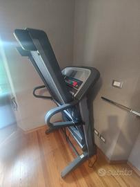 Tapis roulant motorizzato professionale, di fascia alta, ha i suoi anni ma non mi ha mai abbandonato. Inclinazione regolabile elettricamente durante la corsa, velocità fino a 16 km orari che credetemi nella simulazione della salita sono davvero tosti, ammortizzato, diversi programmi preimpostati con velocità ed inclinazioni differenti. Corsa lunga vista la pedana di dimensioni generose sia in lunghezza che in larghezza, permette anche di tenere il passo quando alla fine le energie iniziano a mancare e non si ha più la precisione della falcata iniziale. Cardiofrequenzimetro incorporato con contatti sulla maniglia, sicurezza di arresto a sgancio magnetico, possibilità di utilizzo con programma i-fit adeguando musica a percorso ( che non ho mai utilizzato perché ho sempre amato i percorsi a sorpresa). Tappeto sostituito un paio di anni fa e quindi quasi nuovo. Un ottimo compagno di avventure quando fuori piove ma le gambe fremono per correre. Acquistato diverso anni fa e pagato 1.199,00 euro, e visto l'ottima fattura e la qualità dei materiali costruttivi non ha avuto nessun problema fino ad oggi e durerà ancora molti anni a differenza dei giocattoli in commercio oggi. Disponibile al trasporto al vostro domicilio incluso nel prezzo entro una distanza ragionevole di 50/60 km.