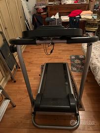 tapis roulant non elettrico. puoi camminare e correre e il tapis roulant si adatta alla tua velocita. segna velocita, calorie, distanza, timer pulsazioni. pieghevole e con le rotelle per trasportarlo. anche inclinabile tramite rotella con 8 livelli di inclinazione e maniglie per appoggiarsi durante l’esercizio