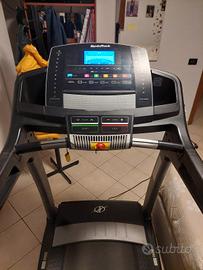 In buone condizioni perfettamente funzionante ,Semiproffessionale e pieghevole.Non è un giocattolino. 15 gradi di pendenza -22 km /H .Pedana =Lunghezza 1 metro e 20 cm. larghezza 50 il nastro + 12 cm per lato appoggiapiedi. Ingombro = lunnghezza 2metri e 8 cm ,Larghezza 94 CM ,Peso 100 kg .Cardio Frequenzimetro da petto + quello sul tapis roulant. Libretto istruzioni .vendo per inutilizzo, problemi al ginocchio .Per informazioni 3926356497.