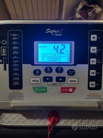 Tapis Roulant compatto, pieghevole e salvaspazio con inclinazione regolabile su 3 livelli: 0%, 7% e 15% (corrispondenti a 0°, 4° e 8° gradi). Dotato di 12 programmi di allenamento, velocità da 1 a 10 km/h. Con sensori pulsazioni battito cardiaco. Facile da movimentare e da riporre grazie alle ruote in dotazione. Dotato di motore lineare Smooth Power DriveTM