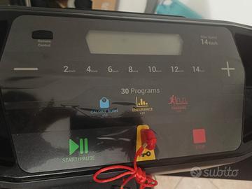 Vendo tapis roulant Domyus run 100 per inutilizzo.Questo tapis roulant è progettato x la corsa da 1 a 14 km/h.la superficie di corsa è di 45 cm x 120cm.funzioni: tempo,distanza,velocità,ritmo,calorie, frequenza cardiaca..30 programmi divise in categorie:10 "calorie".10"resistenza".10"interval training".silenzioso e pratico. Prezzo leggermente trattabile. Si richiede ritiro sul posto .