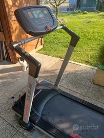 Tapis roulant professionale HIG POWER X5 SLIM. usato ma in buone condizioni. Il modello x 5 SLIM, come tutti i modelli della nuova linea SLIM, presenta un’estetica molto accattivante. Punto di forza di questa linea è la larghezza molto ridotta (extraslim) una volta piegatoe la sua facilità di spostamento. Programmi:1 manuale, 12 presettati con variazione della velocità ed inclinazione, 4 User, 1 Body Fat, 2 HRC Consolle: Consolle Digitale a LCD retroilluminata BLU dove sono visualizzati i valori di: tempo, distanza, velocità, pulsazioni, calorie, inclinazione, programma selezionato.
