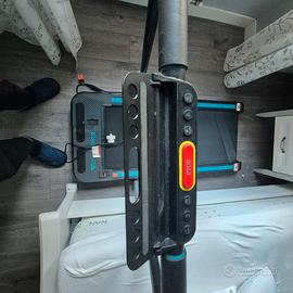 Da chiuso occupa pochissimo spazio si può riporre sotto il letto o in piedi dietro una porta. Aperto il poggia mani si blocca ed è dotato di un pratico porta cellulare.