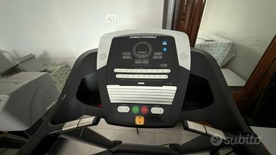 Vendo per non utilizzo Tapis Roulant PRO-FORM SPORT 7.0. Perfetto usato pochissimo. Motore da 3.25 CV picco e di 2.5 CV in continuo- Regolazione della velocità da 0 a 18 km/h con il sistema Quick Speed che permette di accedere direttamente alla velocità desiderata semplicemente schiacciando un tasto- Regolazione dell'inclinazione da 0% a10 % con il sistema Quick incline che permette di variare l'inclinazione desiderata semplicemente schiacciando un tasto- superficie di corsa da de 51x140 cm grande per un maggior comfort- Sistema di ammortizzazione ProShox che permette di ridurre fino al 15% l'impatto sulle articolazioni rispetto a una corsa tradizionale- 20 programmi preinstallati per selezionare un allenamento in funzione alla velocità e inclinazione. Tapis roulant pieghevole con un pistone che ne rende facile l'apertura e dotato di tecnologia Space Saver che permette di risparmiare spazio quando non viene utilizzata. NON SPEDISCO SOLO RITIRO A MANO.