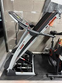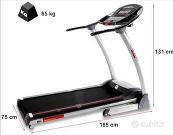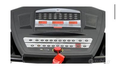 Tapis roulant BH Impulse Dual II, macchina completa con un motore di 2.5 CV che permette di raggiungere una velocità fino a 18 km/h e uina inclinazione del 12%. Caratteristiche Creata per un uso domestico regolare Per un allenamento da 3 a 7 ore a settimana. Potente Motore di 2,5 CV Offre una velocità tra 1 e 18 km/h. Inclinazione elettrica fino al 12% Permette di aumentare l'intensità dei programmi di allenamento. Aiuta a lavorare con una maggiore intensità. Motore con Green Power Technology Permette un uso più efficiente dell’energia e minori consumi. Buona ampiezza della superficie di corsa 130 cm di lunghezza e 45 di ampiezza. Schermo con 3 Monitors da dove si può Selezionare velocità, distanza, scegliere il programma, l'inclinazione, ecc. eisualizzare informazione di alla velocità, tempo, distanza percorsa, calorie consumate e polso. 36 programmi predefiniti Programmi esigenti che aiutano a raggiungere gli obiettivi. 3 profiles personalizzato (uPrg) Permette di personalizzare il tuo profilo di allenamento. Sistema di Ammortizzazione con 6 Elastomeri Aiuta a prevenire le lesioni muscolari e delle articolazioni, inoltre assorbe una parte degli impatti prodotti durante dalla corsa e dalla camminata, allungando così la vita degli elastomeri e della tavola. Utilizzato solo 4/5 volte,vendo per inutilizzo… Per info 328/1322127 no scambi ne affaristi