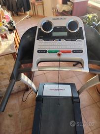 Vendo tapis roulant pieghevole ProForm 500 ZLT, in ottime condizioni e perfettamente funzionante, usato pochissimo. Il tapis roulant ProForm 500 ZLT ha un motore da 2,00 CHP (4,00 HP di picco) e può raggiungere una velocità massima di 18 km/h; l'inclinazione è regolabile, il piano di corsa misura 46x140 cm ed è dotato di ammortizzazione Soft Flex, con assorbimento dell'impatto del 26%; dispone di 12 programmi preimpostati. L'acquirente è tenuto a ritirare l'articolo acquistato. per info 373 8019166