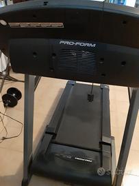 Marca Proform modello 590 HR, usato pochissimo. Il proprietario unico (persona anziana), poco utilizzato. Motore da 2,75 CV Gamma di velocità da 0 a 16 km/h (da 0 a 10 mph) Quick SpeedTM: modifica velocità/inclinazione con un solo tocco di un pulsante Inclinazione da 0 a 10% Tapis roulant pieghevole con tecnologia Space SaverTM Display LED 8 programmi preimpostati Sistema di ammortizzazione ProtechTM Peso massimo dell'utente: 135 kg (300 libbre) Superficie di camminata/corsa di 46 x 140 cm Ventilatore CoolAireTM integrato